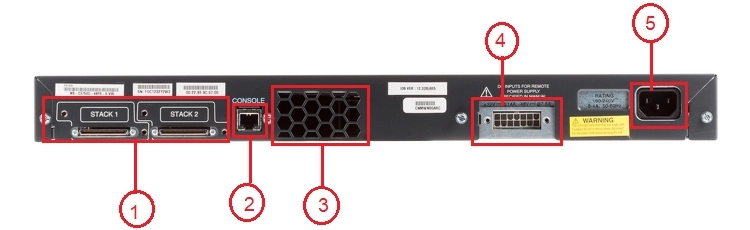 سوییچ WS-C3750G-48TS-S سیسکو، 48 پورت اترنت 10/100/1000 و چهار پورت (mini-GBIC) آپلینک SFP در قسمت پنل جلویی خود دارد. پورت های سوئیچ شبکه دارای 2 دسته اصلی هستند: پورت uplink و پورت normal (downlink). پورت های uplink، سرعت بالاتری دارند و برای اتصال به دستگاه های دیگر در شبکه استفاده می شود. در حالی که پورت های عادی فقط برای انتقال داده های منظم استفاده می شوند. چراغ های جلوی سوئیچ وضعیت Link activity, port transmission speed, port duplex mode, bandwidth utilization %, system, RPS (Redundant Power Supply) را به ما نشان می دهند.