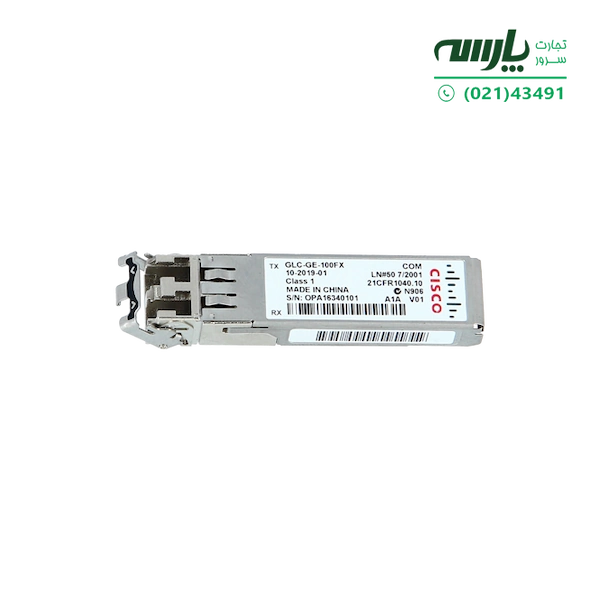 ماژول فیبر نوری GLC-GE-100FX سیسکو، با طول موجی برابر با 1310 نانومتر قادر است دیتا را انتقال دهد و با اسلات (SFP (mini GBIC سازگاری دارد. این ماژول نصب آسانی دارد و ارتباط بین دو سوئیچ را به بهترین حالت ممکن برقرار می کند. GLC-GE-100FX از سری ماژول های با طول بلند 1000BASE-LX/LH می باشد. نوع کابل این ماژول فیبر نوری از کابل های MMF است. این ماژول از استاندارد های IEEE 802.3Z و IEEE 802.3ah پشتیبانی می کند. مبدل رابط سریع اترنت قابل اتصال به فرم کوچک (SFP) Cisco 100BASE-FX به یک پورت SFP اترنت گیگابیتی در سوئیچ های سری 3750 سیسکو، سری 3560 و سری 2970 وصل می شود. Cisco SFP اتصال تمام دوبلکس 100 مگابیت بر ثانیه را بین سوئیچ ها روی زیرساخت های فیبر چند حالته (MMF) فراهم می کند.